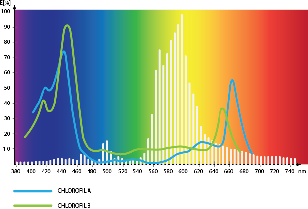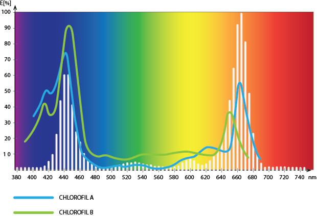 Zapotrzebowanie roślin na światło mieści się w dwóch głównych zakresach widma światła widzialnego które wykorzystują organy asymilacyjne: